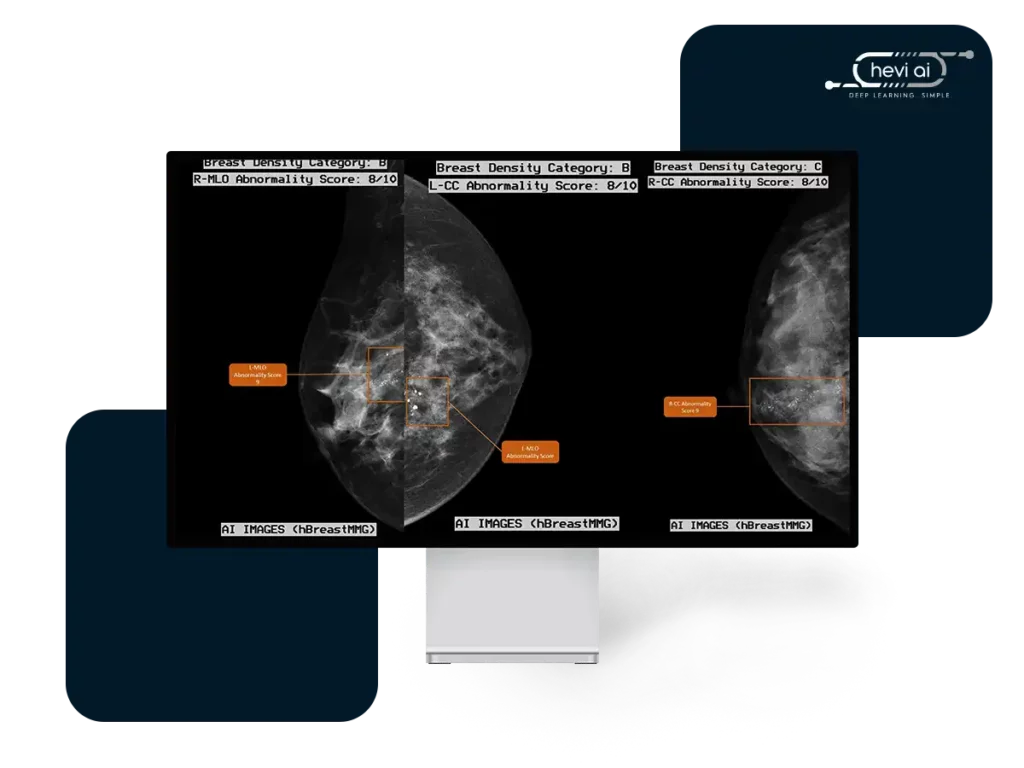 Оцінюючи ураження та розраховуючи їх потенційну ознаку раку молочної залози, у поєднанні з показниками достовірності на основі штучного інтелекту, hBreastMMG забезпечує радіологів точними даними.